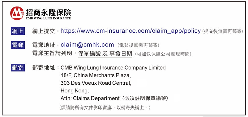或法律文件時,請立刻呈交保險公司,以便保險公司代為跟進或辯護。